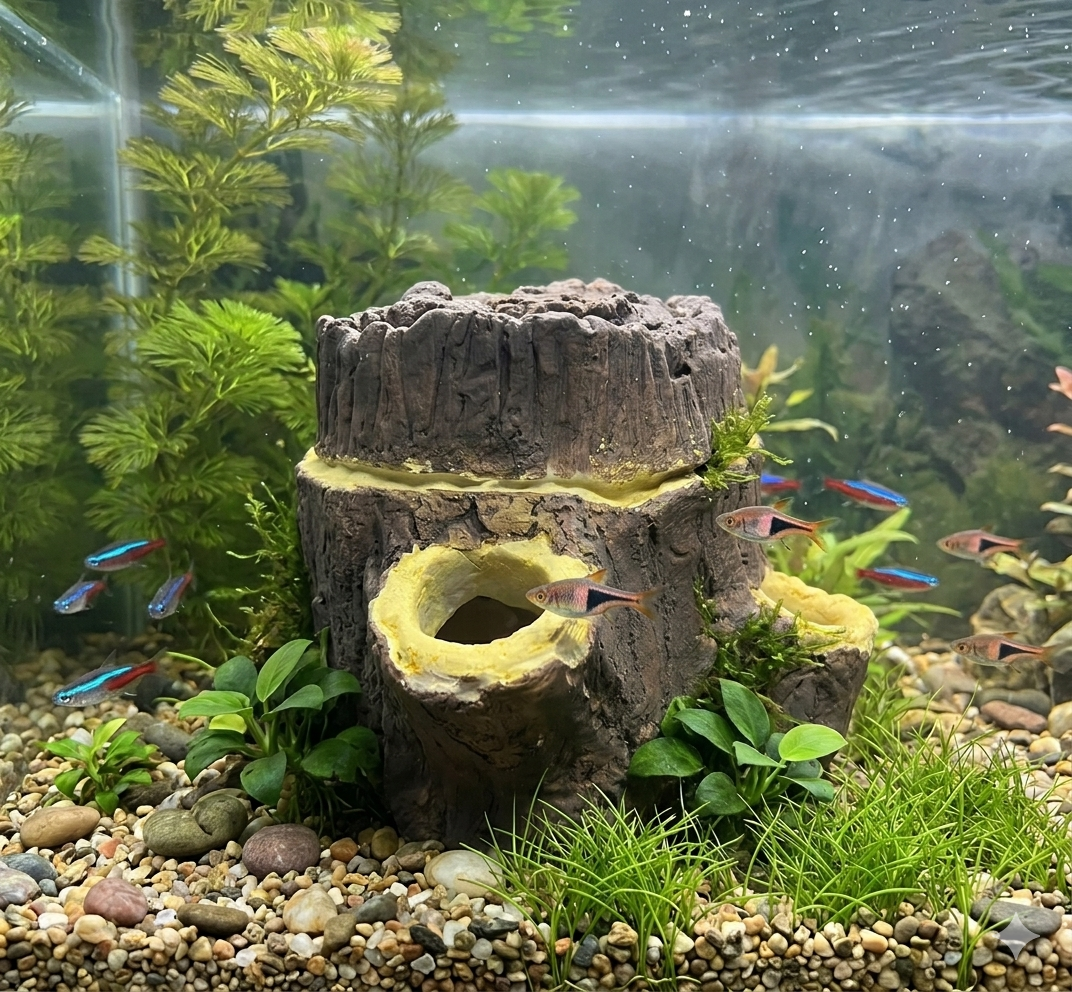 • Adorno de cerámica con diseño de tronco cortado, apto para acuarios medianos y grandes