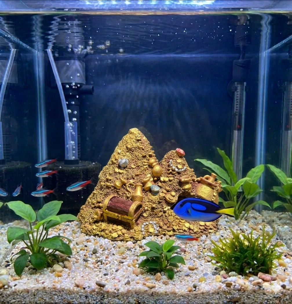 •Adorno Montaña De Oro• adorno sumergible con diseño de montaña de oro, llamativo para acuarios con una pequeña entrada de escondite para peces pequeños.