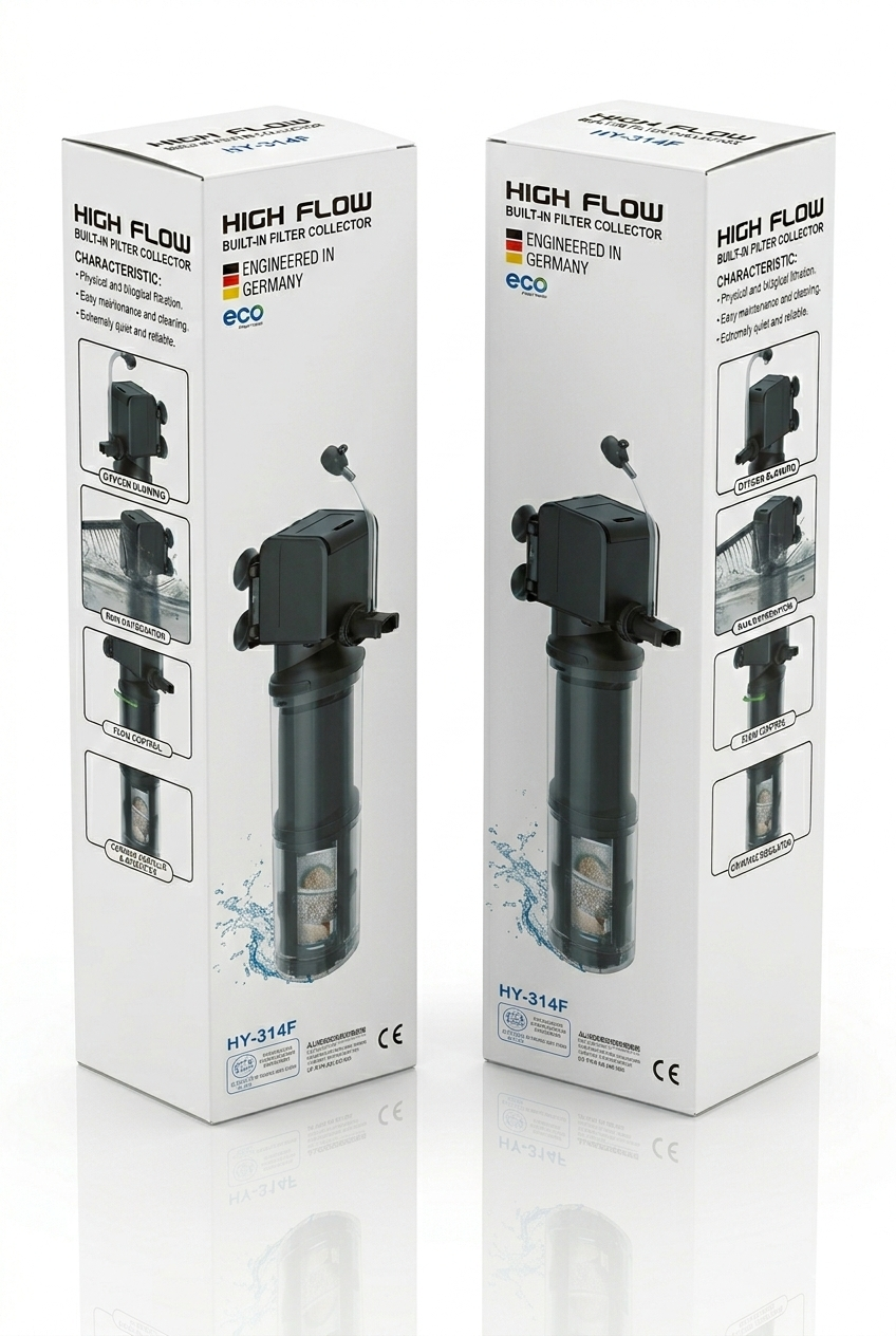 • High Flow HY-314F es un filtro interno versátil y potente que garantiza un agua cristalina mediante filtración biológica y física. Su diseño «Eco-friendly» de ingeniería alemana destaca por ser sumamente silencioso e incorporar sistemas ajustables de oxigenación tipo lluvia, siendo la solución ideal para quienes buscan eficiencia y bajo mantenimiento en un solo equipo.