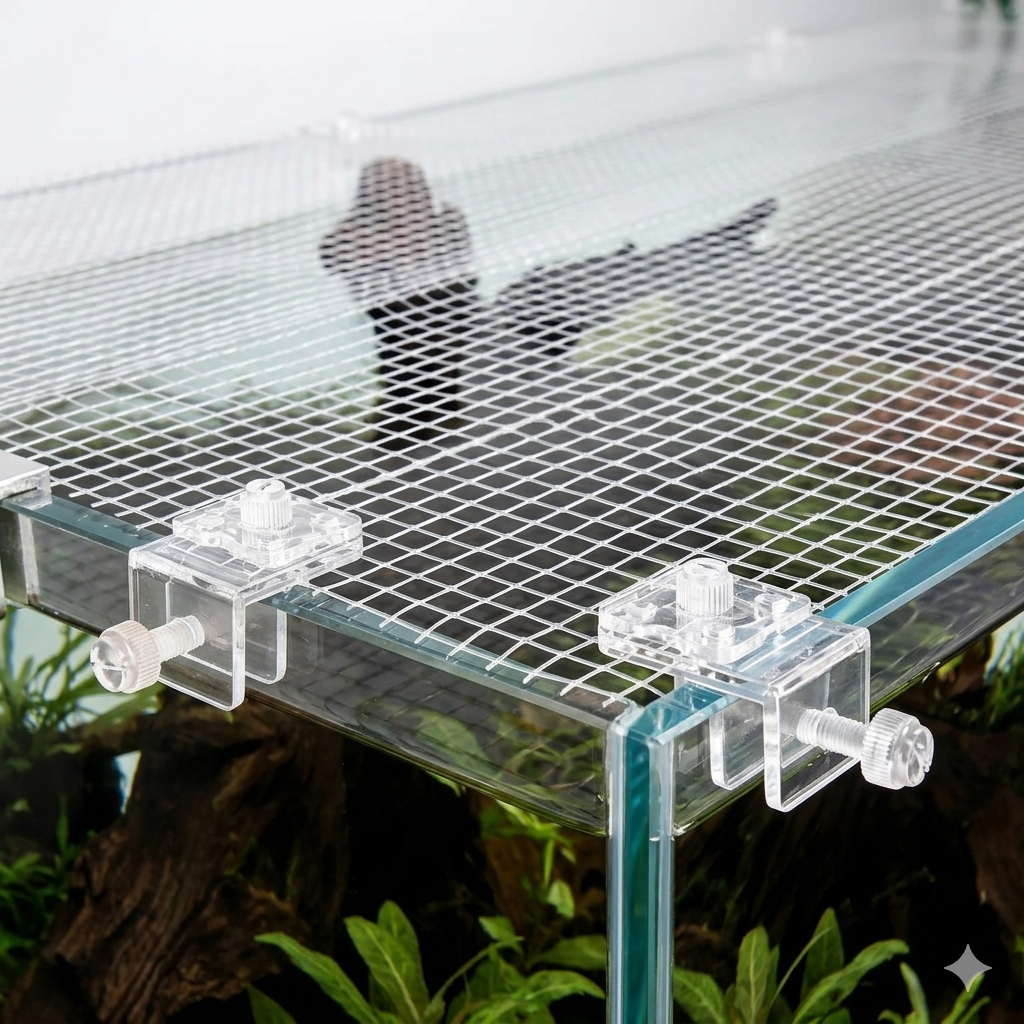 •A diferencia de las tapas de vidrio o plástico sólido, la malla es menos llamativa a la vista, lo que permite apreciar el aquascaping.